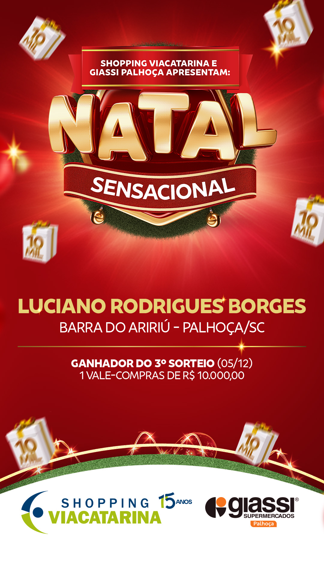 Ganhador do Terceiro Sorteio (05.12) – Luciano Rodrigues Borges, Aririú, Palhoça.
