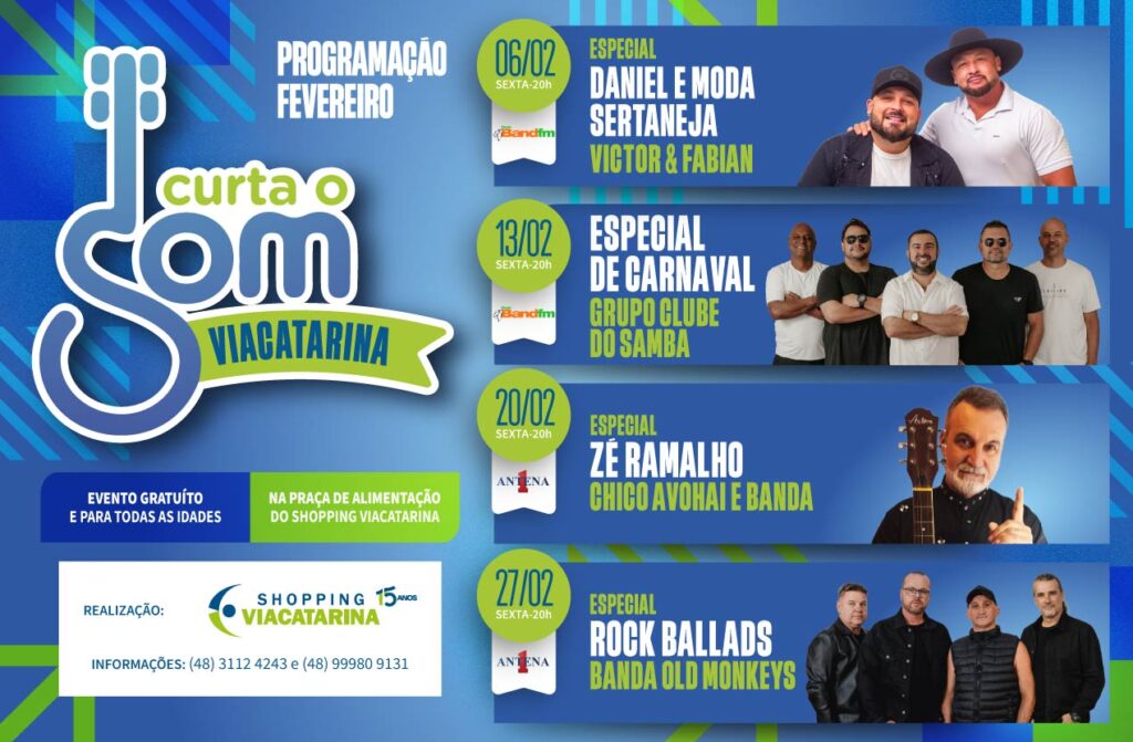 OUTUBRO é MAIS UM mês de música boa no Shopping ViaCatarina!Prepare-se para uma Oktober de Grandes Shows, com atrações imperdíveis todas as sextas, às 20h, na praça de alimentação do Shopping de Palhoça. E desta vez o público é premiado com seis atrações para todas as preferências musicais. E o melhor: tudo gratuito e aberto […]