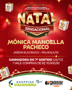 Sétimo Sorteio (26.12) – Monica Manoella Pacheco, bairro Brejaru, Palhoça.
